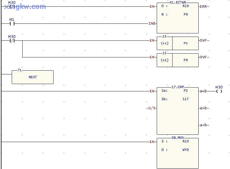 【控制要求】 FBS-40MA + FBs-TC16,偵測外部 16路溫度 , 每隔3秒將新溫度數(shù)據(jù)放入 D101-D116;當溫度超過 40℃或小于- 40℃時,正常指示燈滅。