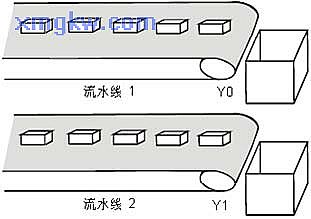 程序使用了觸發(fā)電路來(lái)實(shí)現(xiàn) Y0,Y1的交替導(dǎo)通,使得兩條流水線輪流傳送產(chǎn)品。
