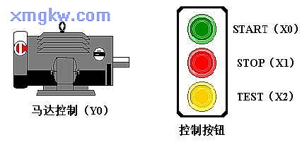 按下 START按鈕,馬達(dá)運(yùn)轉(zhuǎn);按下 STOP按鈕,馬達(dá)停止。